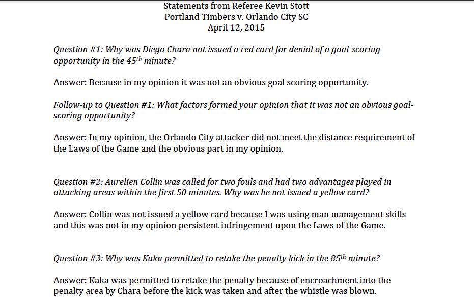 Still others, perhaps Timbers fans, want some answers on why Kaká was given a second opportunity on his second-half penalty. Well, here are your answers from referee Kevin Stott.