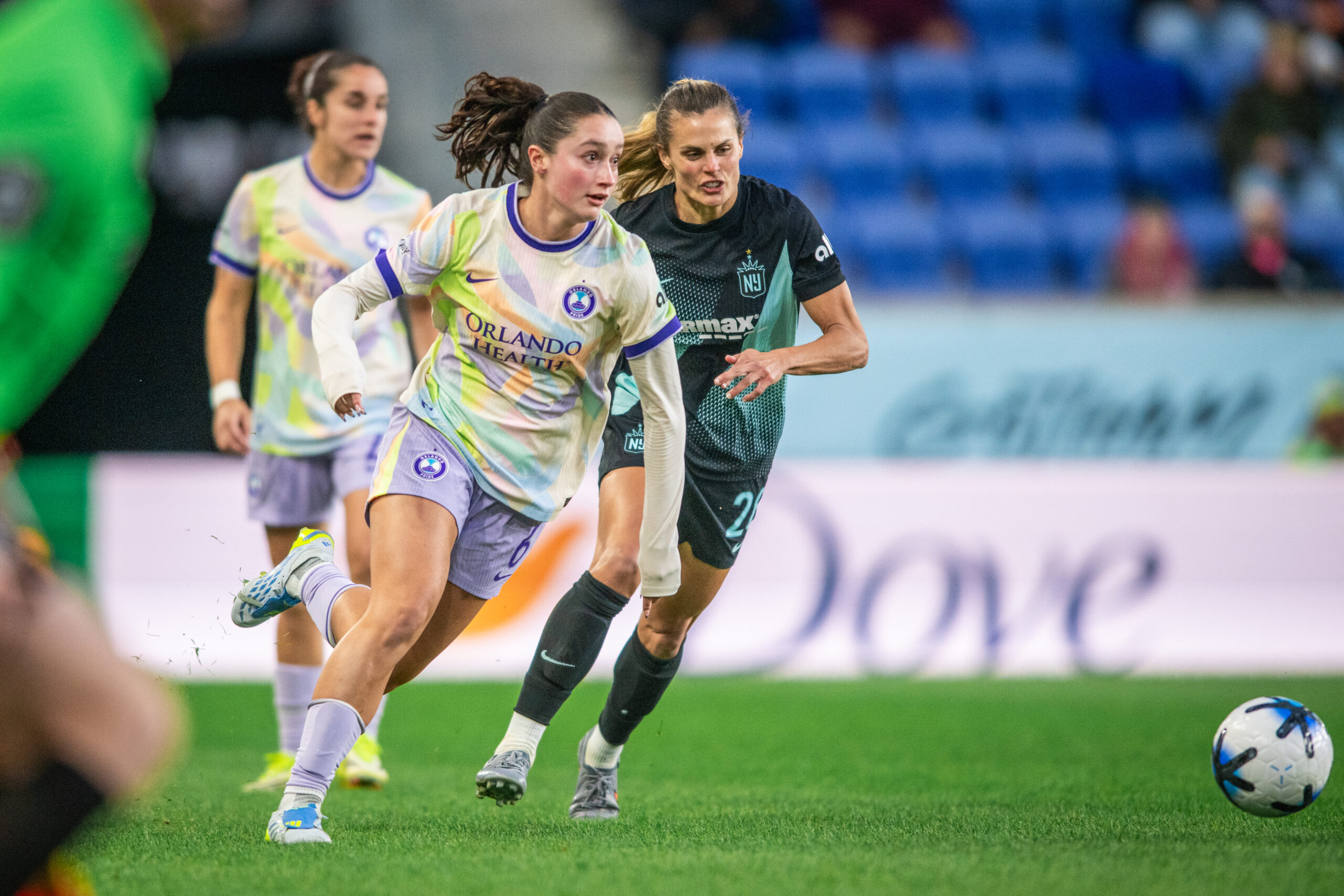 Gotham continued to press in the dying minutes as the Pride desperately defended in their own third. In the 88th minute, Dudley made a run to the top of the box before Oihane blocked her shot. Gotham kept possession and Dudley played Lavelle into the box. However, Rafaelle stuck her foot in and cleared it.